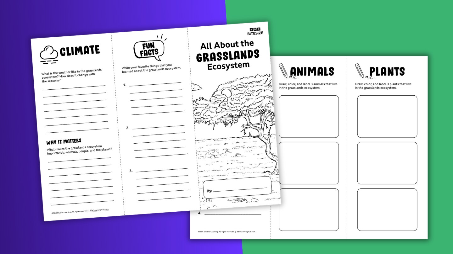 Invite your students on an adventure across the world’s amazing grasslands! From the roaring lions of the African savanna to the thundering bison of the Great Plains, these ecosystems are bursting with life. After watching our videos, challenge your students to become ecosystem experts by creating their own colorful report filled with fascinating facts. (They’ll need to dig deeper with extra research, too!) Inside the brochure, students will uncover and share: