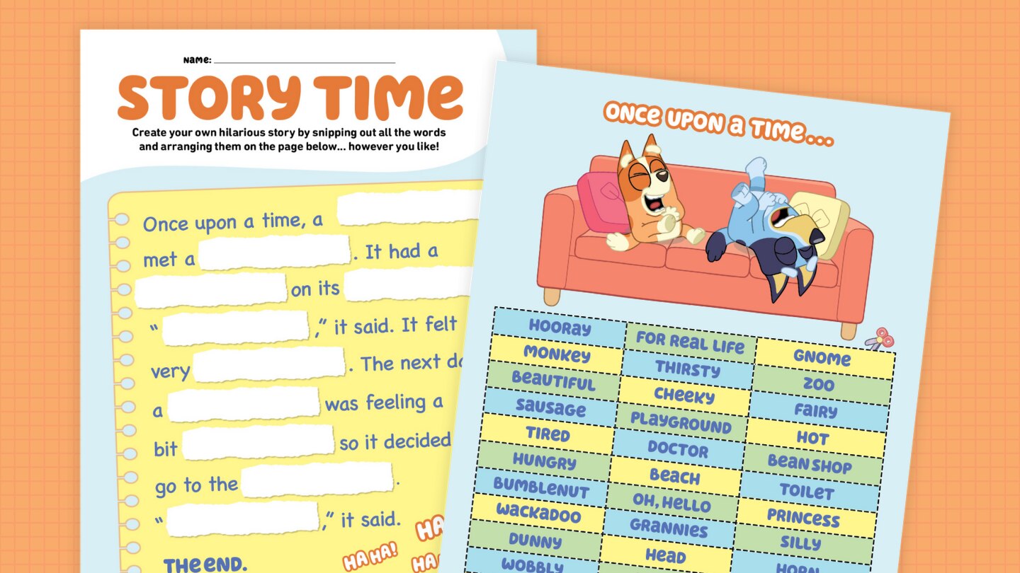 It’s story time... but you decide what happens. Cut out the story cards (Bluey caught in a web, a spider inching its way down, and more) and put them in any order you like. Make up an epic spooky story to go with the pictures. No matter what, it starts out once upon a time and ends with they lived happily ever after!