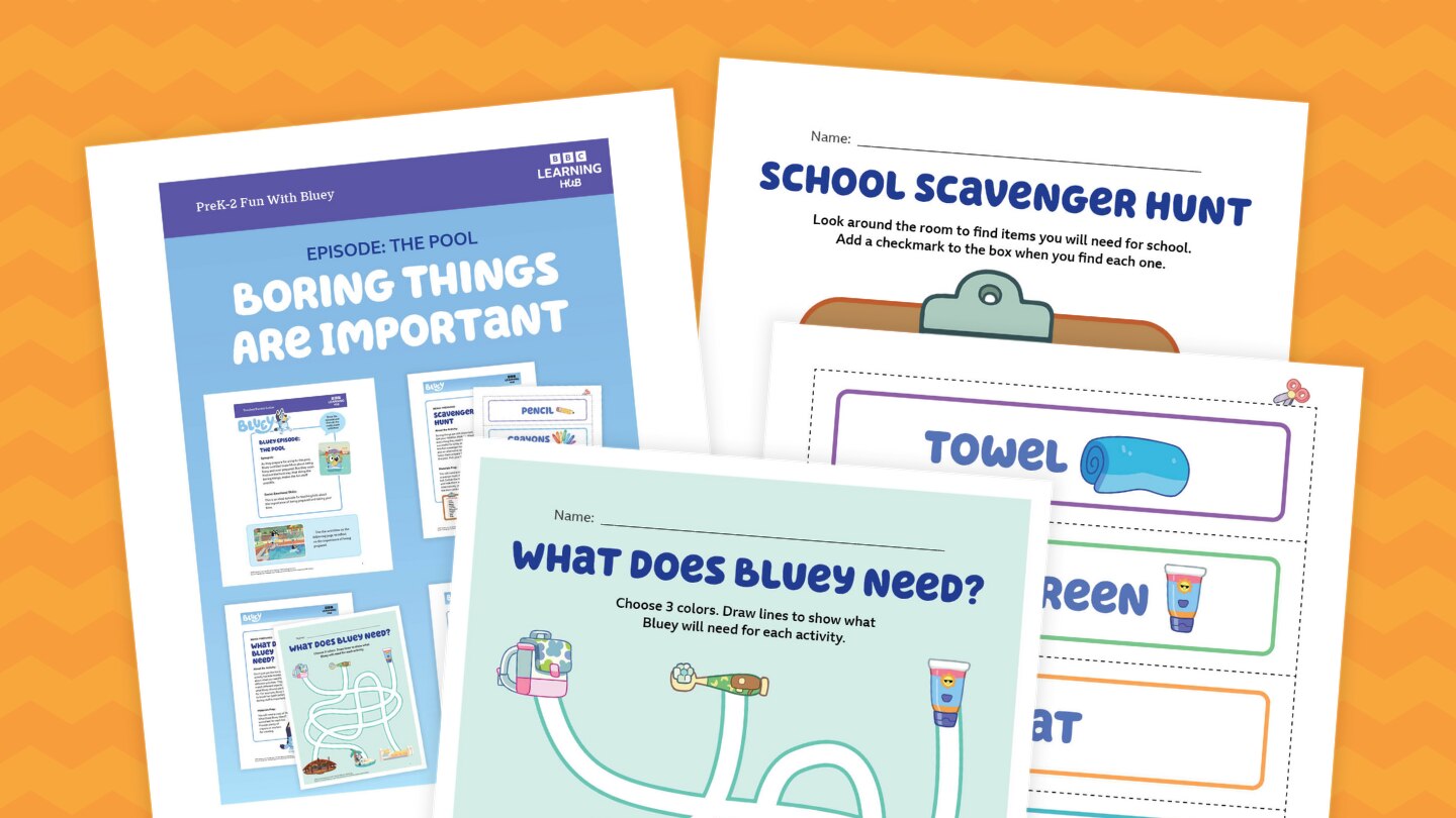 From brushing your teeth to packing the floaties, boring things are important! Try this lesson, which uses the Bluey episode "The Pool" as the kickoff to a classroom conversation about the importance of being prepared. The lesson includes printables for three activities in which kids go on a scavenger hunt to find everything they need to be successful for a day at school or the pool, complete a maze to match different objects to what Bluey should use them for, and figure out where Bluey and her family are going based on what they’ve packed.
