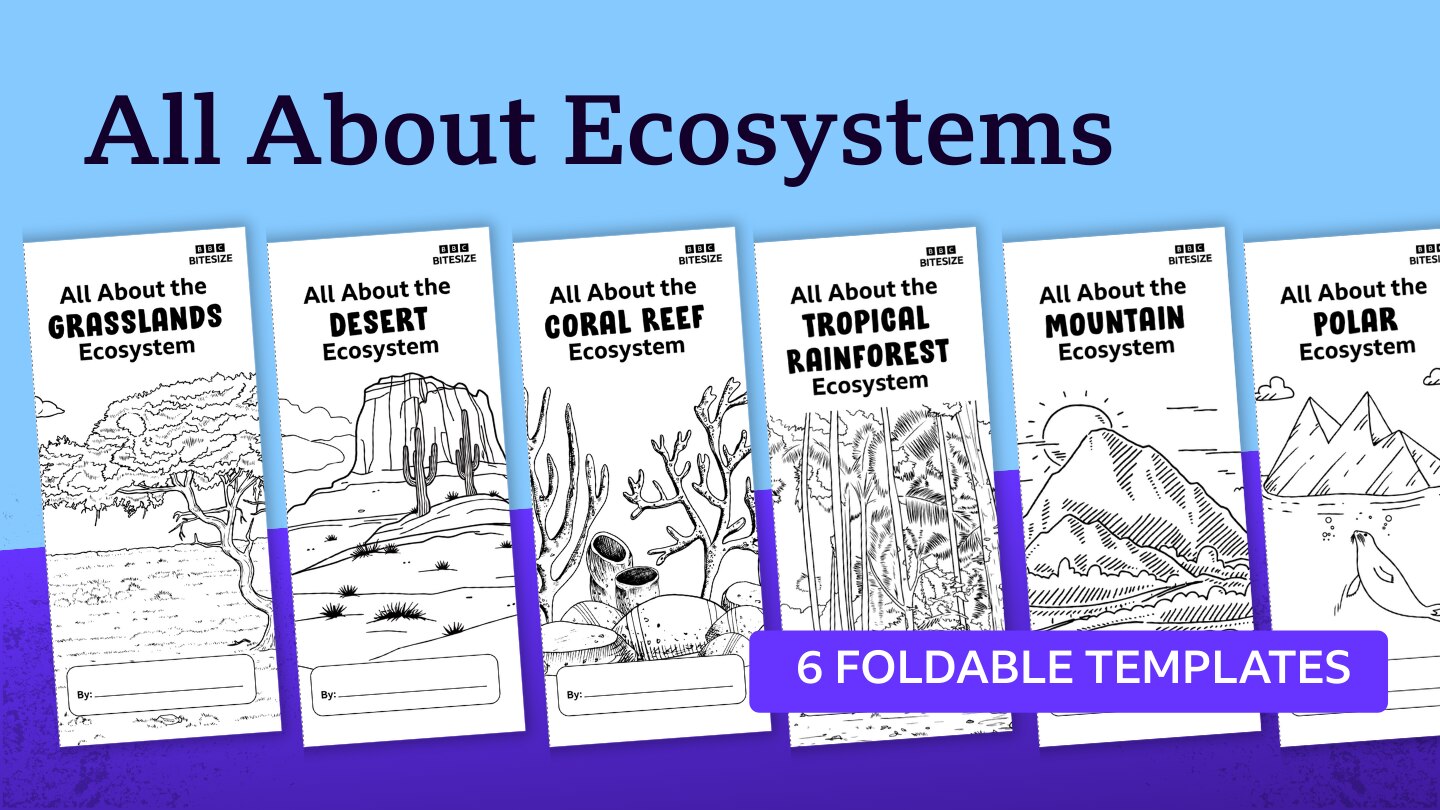Teaching ecosystems helps students see how every living thing is connected. That's why we've created our Ecosystems Collection. We cover six ecosystems (grasslands, desert, coral reef, tropical rainforest, mountain, and polar). After watching videos on each ecosystem, challenge your students to become ecosystem experts by creating their own colorful reports filled with fascinating facts. (They’ll need to dig deeper with extra research, too!) There's a brochure template for each of the six ecosystems. Inside, students will uncover and share: