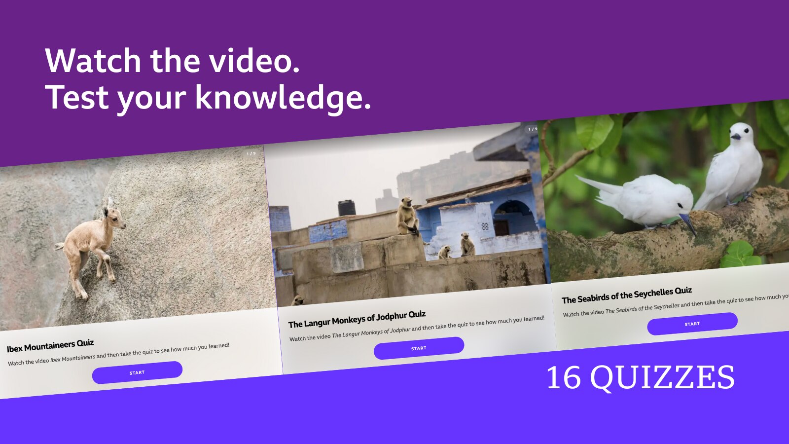 Who doesn't love animal facts? Invite your Grade 3–8 students to watch wildlife videos from the award-winning BBC series Planet Earth, in which Sir David Attenborough takes them up close and personal with incredible animals across awe-inspiring landscapes. Then, they can see how much they learned with one of these 16 engaging quizzes (we're big fans of our guess the image question type!). The videos are linked under each quiz page. Assign one or assign them all!